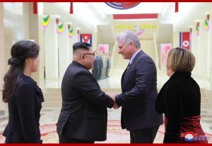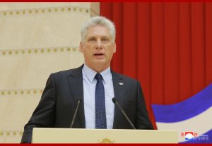 경애하는 최고령도자 김정은동지께서 꾸바공화국 국가리사회 위원장 겸 내각수상 미겔 마리오 디아스 까넬 베르무데스동지의 우리 나라 방문을 환영하여 연설을 하시였다.