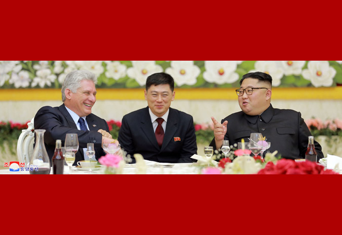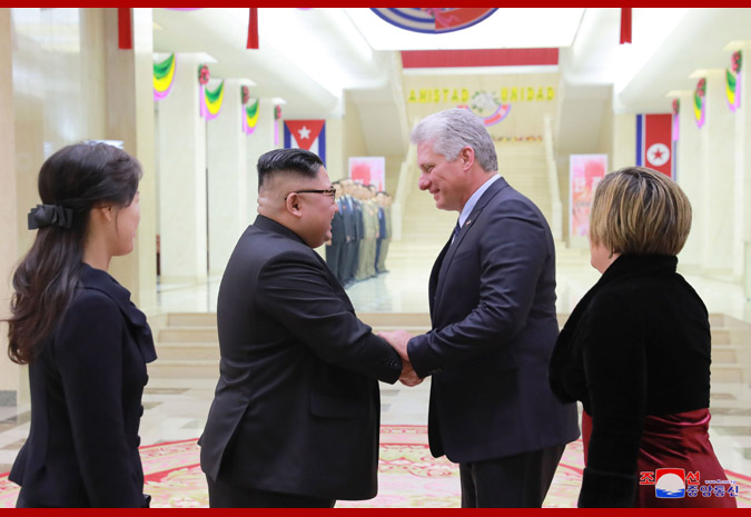 조선로동당 위원장이시며 조선민주주의인민공화국 국무위원회 위원장이신 우리 당과 국가, 군대의 최고령도자 김정은동지께서는 꾸바공화국 국가리사회 위원장 겸 내각수상 미겔 마리오 디아스 까넬 베르무데스동지의 우리 나라 방문을 환영하여 11월 4일 저녁 성대한 연회를 마련하시였다.