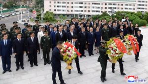 리향동 퇴역군인사무부 국장을 단장으로 하는 중국청년간부대표단이 23일 우의탑을 찾았다. 대표단 등의 명의로 된 꽃바구니들이 우의탑에 진정되였다. 대표단성원들은 항미원조보가위국의 기치밑에 조선전선에서 제국주의자들의 무력침공을 반대하여 청춘도 생명도 서슴없이 바쳐싸운 중국인민지원군 렬사들을 추모하여 묵상한 다음 우의탑을 돌아보았다.(끝)