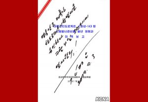 경애하는 최고령도자 김정은동지께서 주체106(2017)년 7월 3일 대륙간탄도로케트 《화성-14》형시험발사를 단행할데 대하여 친필명령하시였다.(끝)