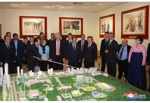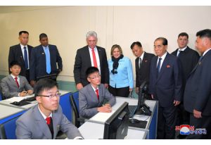꾸바공화국 국가리사회 위원장 겸 내각수상 미겔 마리오 디아스 까넬 베르무데스동지와 리스 꾸에스따 뻬라싸녀사가 5일 김일성종합대학을 참관하였다.