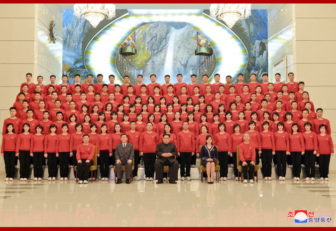 조선로동당 위원장이시며 조선민주주의인민공화국 국무위원회 위원장이시며 조선인민군 최고사령관이신 경애하는 최고령도자 김정은동지께서는 남측지역에서 제23차 겨울철올림픽경기대회 축하공연을 성과적으로 진행하고 돌아온 삼지연관현악단성원들을 만나시고 기념사진을 찍으시였다.