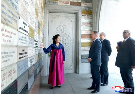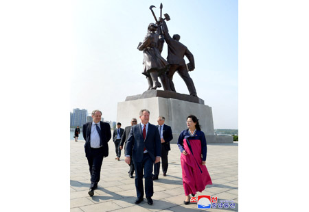데이비드 말드러우 비슬리 세계식량계획 집행국장과 일행이 10일 주체사상탑을 참관하였다.