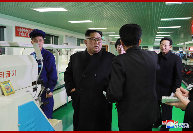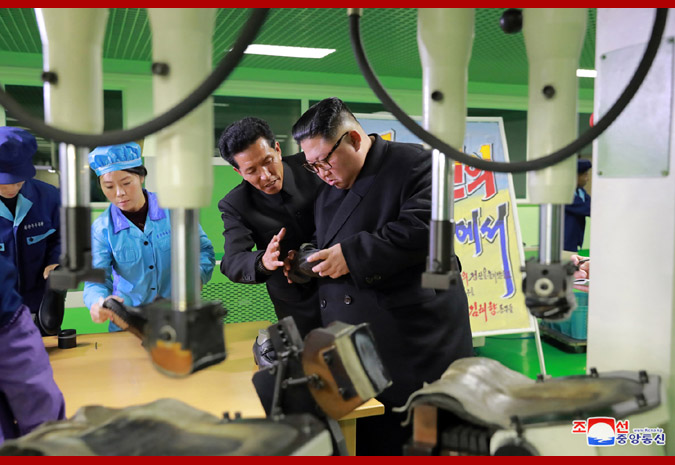 경애하는 최고령도자동지께서는 갑피직장, 제화직장을 비롯한 생산현장들을 돌아보시면서 당의 방침집행정형을 구체적으로 료해하시였다.