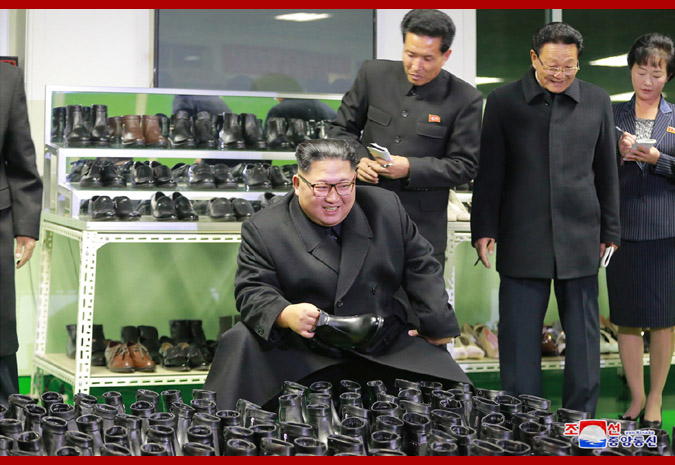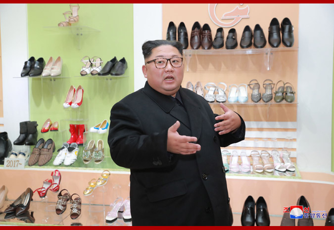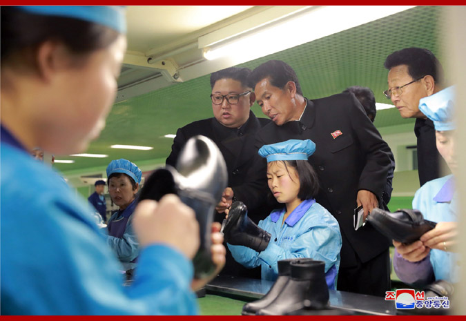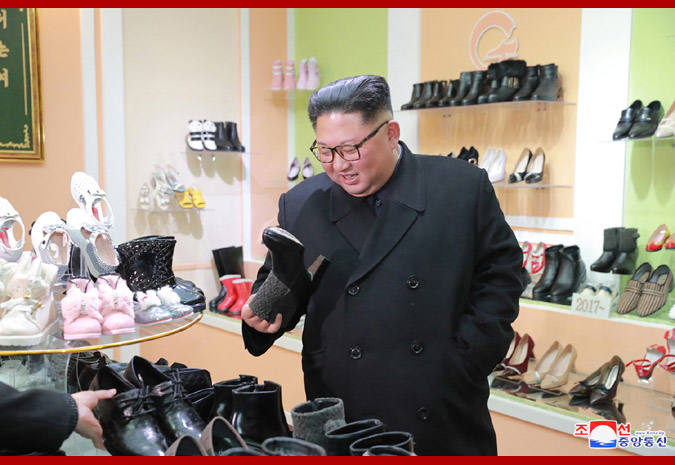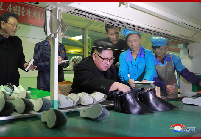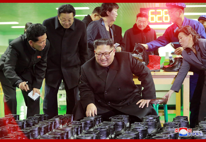 조선로동당 위원장이시며 조선민주주의인민공화국 국무위원회 위원장이시며 조선인민군 최고사령관이신 경애하는 최고령도자 김정은동지께서 원산구두공장을 현지지도하시였다.