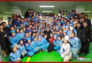 경애하는 최고령도자동지께서는 원산구두공장종업원들과 생산현장들에서 뜻깊은 기념사진을 찍으시였다.