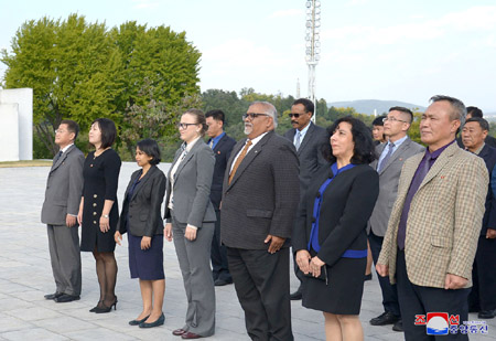 꽃바구니와 축하편지를 8일 조선로동당 중앙위원회 정치국 위원이며 당중앙위원회 부위원장인 리수용동지에게 외교단 단장인 이스마일 아흐마드 무함마드 하싼 팔레스티나특명전권대사가 전달하였다.(끝)