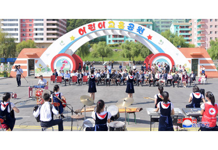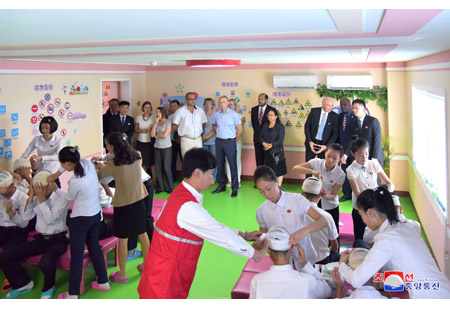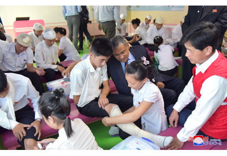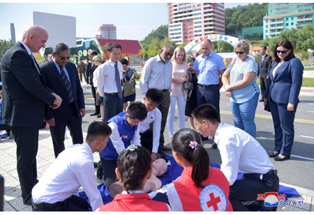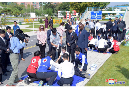 2018년 세계구급처치의 날에 즈음한 청소년적십자구급처치활동소개모임이 19일 평양시어린이교통공원에서 진행되였다.