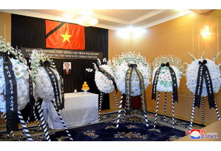 정권기관, 성, 중앙기관들에서 윁남사회주의공화국 주석 쩐 다이 꽝동지를 추모하여 26일 주조 윁남사회주의공화국대사관에 화환들을 보내였다.