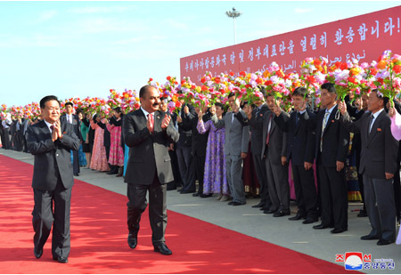 평양국제비행장에서 조선로동당 중앙위원회 정치국 상무위원회 위원이며 조선민주주의인민공화국 국무위원회 부위원장이며 당중앙위원회 부위원장인 최룡해동지, 조선로동당 중앙위원회 부장 리일환동지, 조선로동당 중앙위원회 부부장 한만혁동지, 관계부문 일군들과 땀맘 쑬레이만 주조 수리아특명전권대사가 대표단을 전송하였다.(끝)