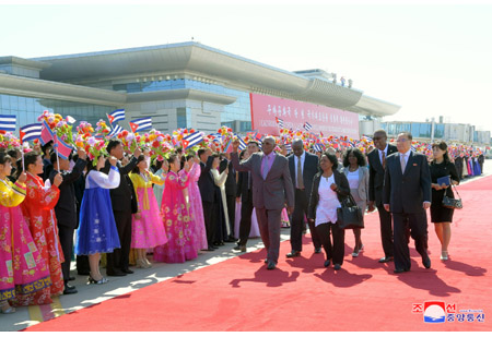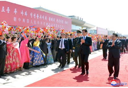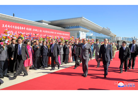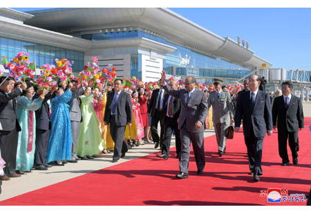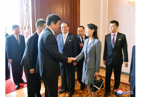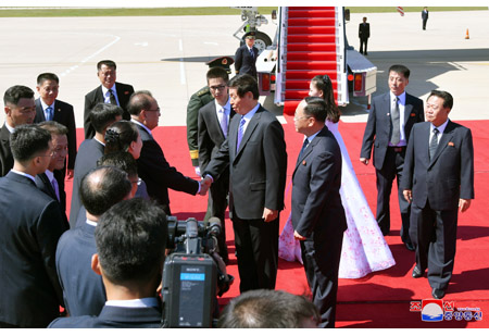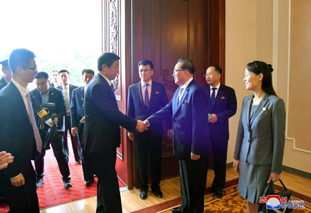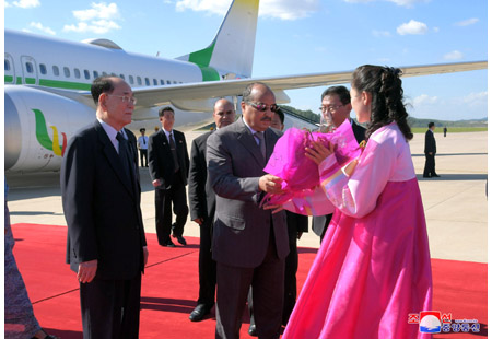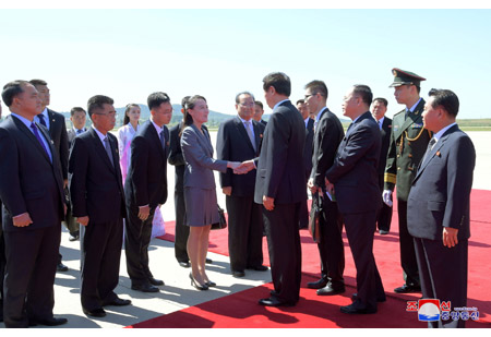 조선로동당 중앙위원회 정치국 상무위원회 위원이며 조선민주주의인민공화국 국무위원회 부위원장이며 당중앙위원회 부위원장인 최룡해동지, 조선로동당 중앙위원회 정치국 위원이며 당중앙위원회 부위원장인 리수용동지, 조선로동당 중앙위원회 정치국 후보위원이며 당중앙위원회 제1부부장인 김여정동지, 조선로동당 중앙위원회 제1부부장 김성남동지, 외무성 부상 리길성동지, 관계부문 일군들과 리진군 주조 중화인민공화국 특명전권대사, 대사관 성원들이 대표단을 따뜻이 맞이하였다.