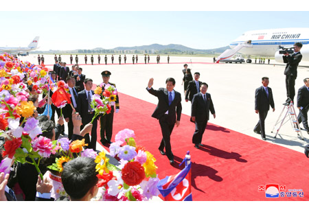 조선로동당 중앙위원회와 조선민주주의인민공화국정부의 초청에 따라 중국공산당 중앙위원회 총서기, 중화인민공화국 주석 습근평동지의 특별대표인 중국공산당 중앙위원회 정치국 상무위원회 위원, 중화인민공화국 전국인민대표대회 상무위원회 위원장 률전서동지가 인솔하는 중화인민공화국 당 및 정부대표단이 조선민주주의인민공화국창건 70돐 경축행사에 참가하기 위해 8일 평양에 도착하였다.