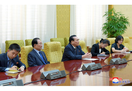 최고인민회의 상임위원회 부위원장 김영대동지는 8일 만수대의사당에서 의례방문하여온 팔레스티나국가 대통령특사인 리야드 알 말리키 외무 및 이주민상과 일행, 까씸굴리 바바예브 국회 부의장을 단장으로 하는 뚜르크메니스딴정부대표단을 각각 만나 담화를 하였다.(끝)