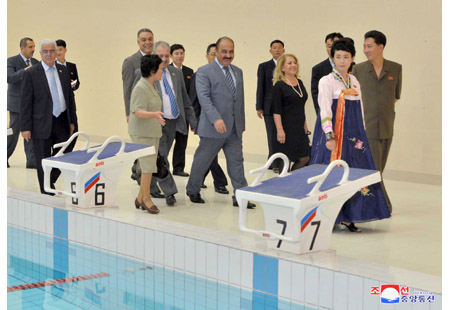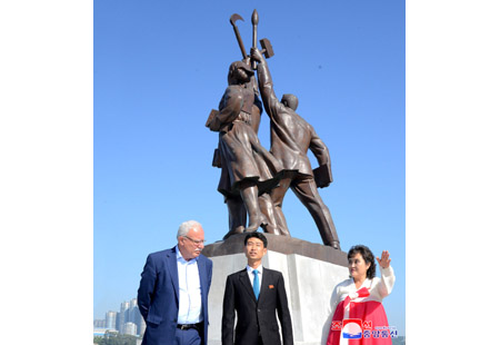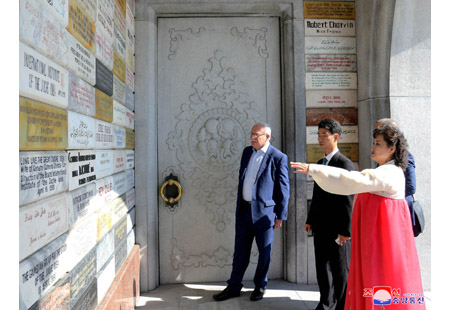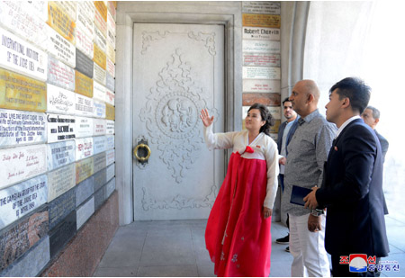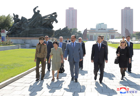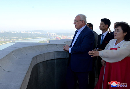 팔레스티나국가 대통령특사인 리야드 알 말리키 외무 및 이주민상과 일행, 오만추장국 추장대표인 알리 마스우드 알리 알 수나이디 무역 및 공업상과 일행이 8일 주체사상탑을 참관하였다.