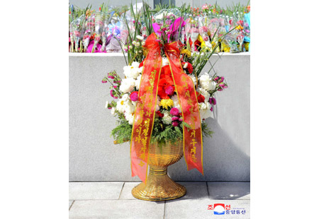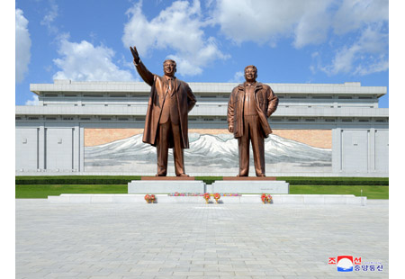 만수대언덕에 높이 모신