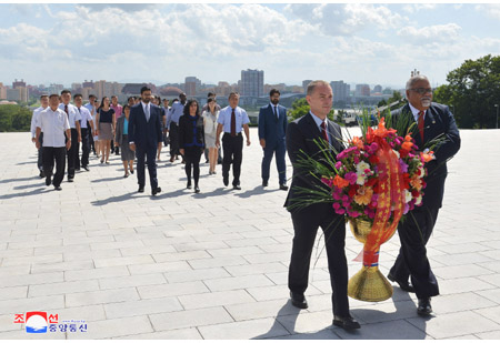 꽃바구니를 3일 주조 나이제리아련방공화국 림시대리대사가 해당 부문 일군에게 전달하였다.(끝)