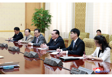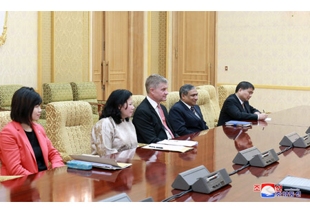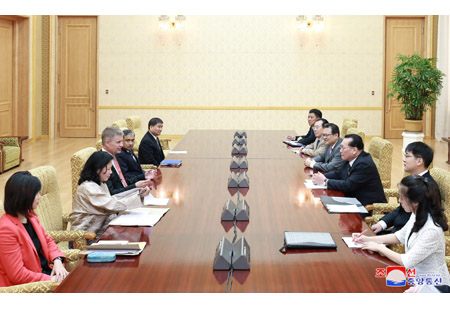 최고인민회의 상임위원회 부위원장 김영대동지는 24일 만수대의사당에서 의례방문하여온 에리크 솔헤임 유엔환경계획 집행국장과 일행을 만나 담화를 하였다.(끝)