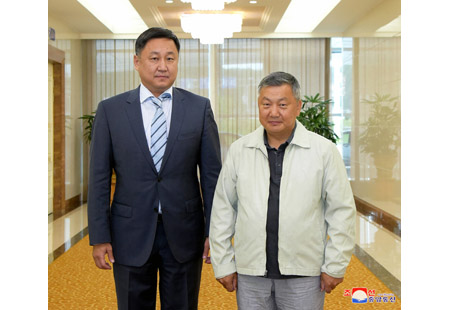 조선외무상 리용호동지는 13일 만수대의사당에서 의례방문하여온 잔다후긴 엔흐볼드 몽골대통령사무국장과 일행을 만나 담화를 하였다.(끝)