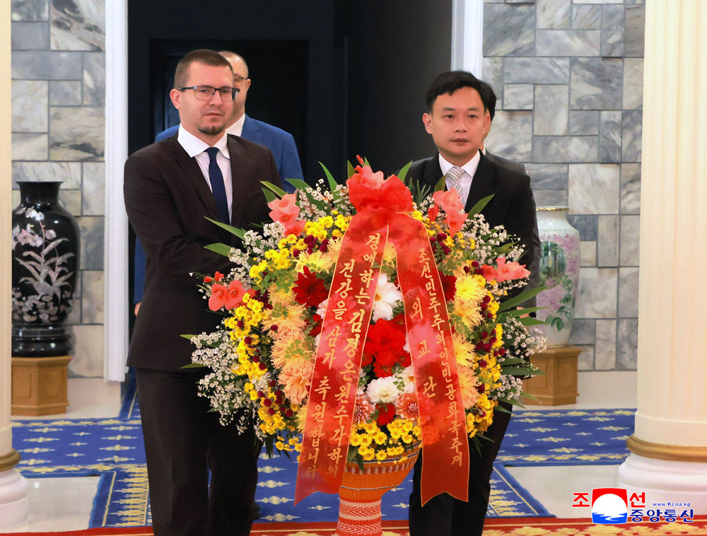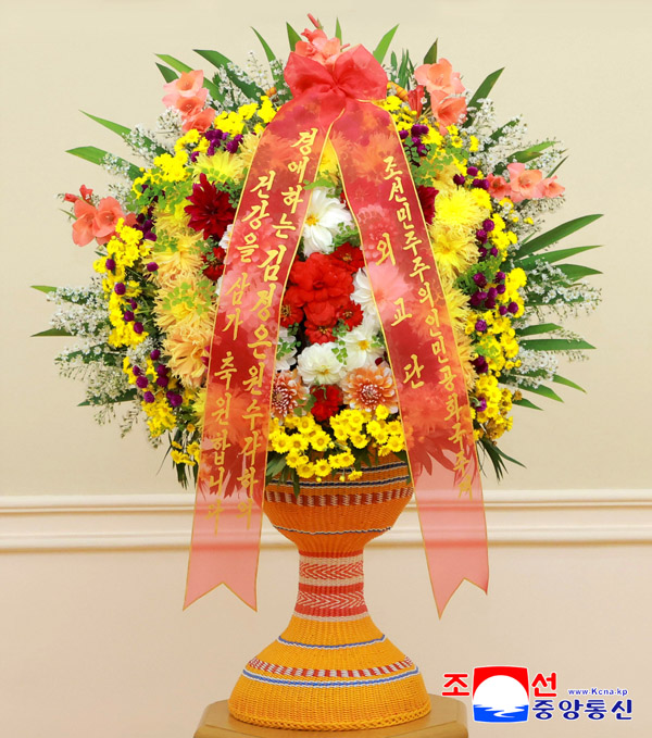 꽃바구니와 축하편지를 외교단을 대표하여 윁남사회주의공화국 특명전권대사, 로씨야련방 림시대리대사가 5일 해당 부문 일군에게 전달하였다.(끝)