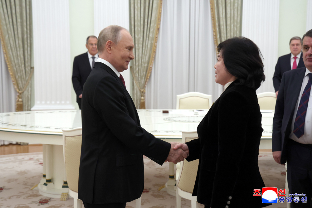 로씨야련방 외무성의 초청에 따라 로씨야련방을 방문하고있는 조선민주주의인민공화국 외무상 최선희동지가 27일 모스크바 크레믈리에서 로씨야련방 대통령 울라지미르 울라지미로비치 뿌찐동지와 상봉하였다.