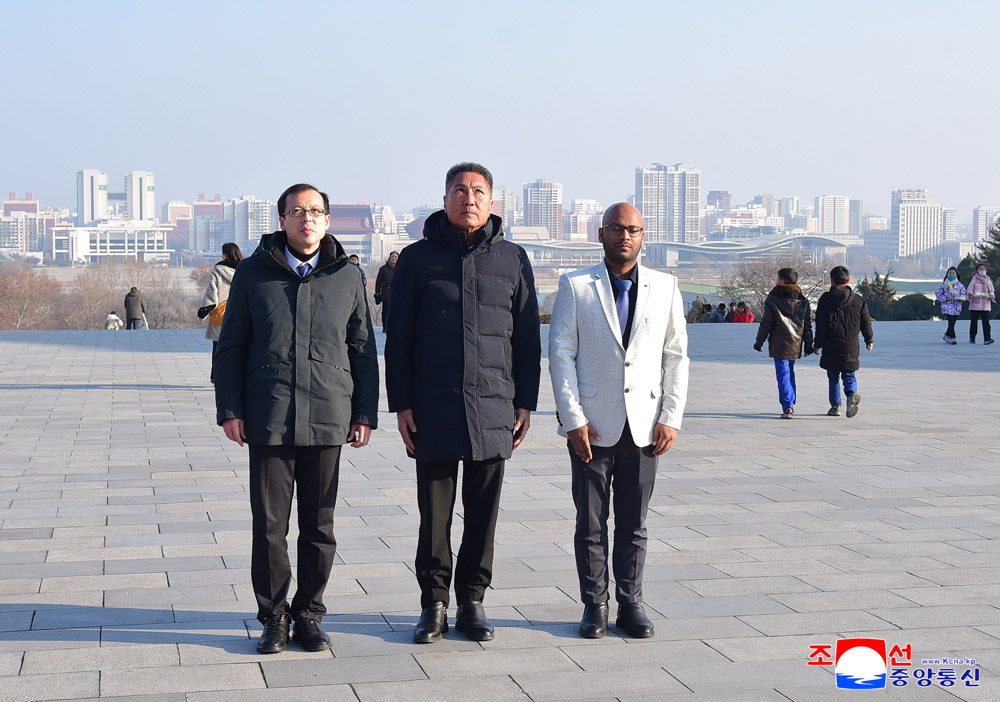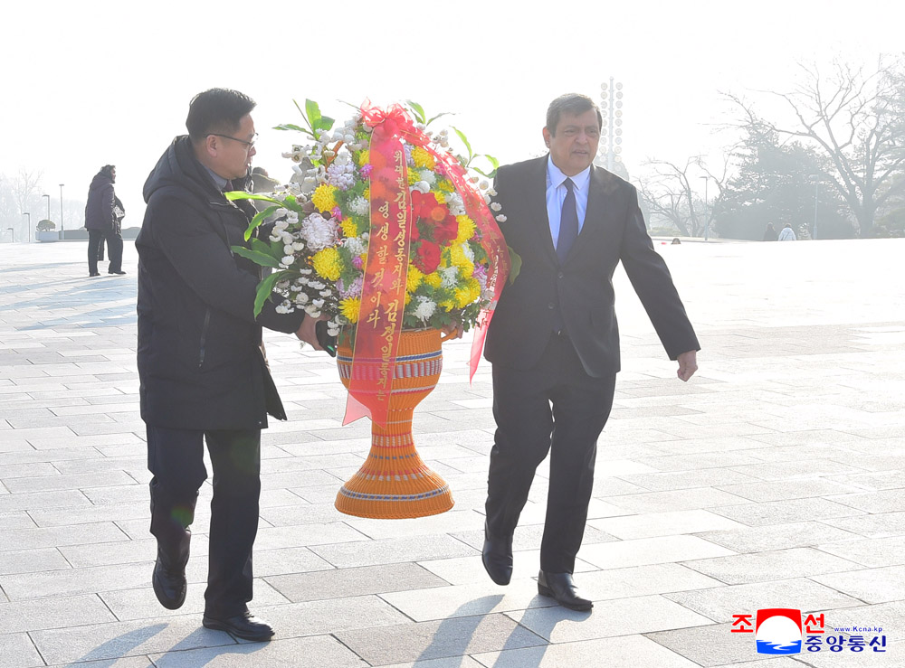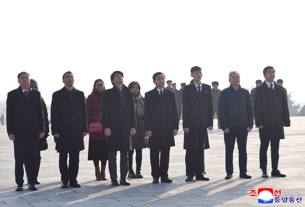 또한 이날 위대한 수령님과 위대한 장군님의 동상을 찾아 우리 나라 주재 윁남, 라오스, 수리아, 인디아, 꾸바, 니까라과의 외교대표들과 대표부 성원들이 꽃바구니들을 진정하고 숭고한 경의를 표시하였다.(끝)