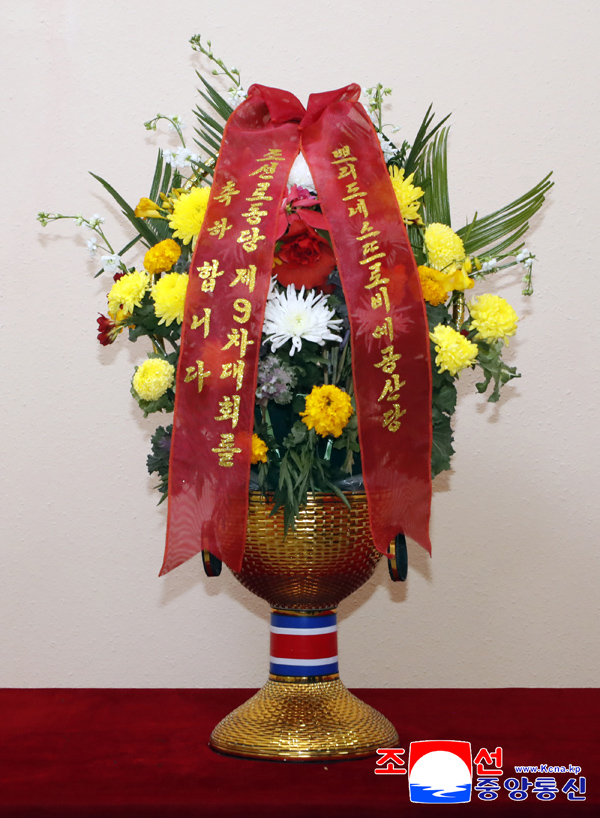 경애하는 김정은동지께 조선로동당 제9차대회에 즈음하여 로씨야련방공산당 중앙위원회, 통일로씨야당 연해변강지부, 사회주의정당 《정의의 로씨야》 연해변강지부리사회, 공산당련맹-쏘련공산당 중앙리사회, 아르메니야공산당, 몰도바공화국공산주의자당, 그루지야통일공산당, 끼르기즈스딴공산주의자당, 남부오쎄찌야공화국공산당, 아브하지야공산당, 쁘리드네스뜨로비예공산당, 따쥐끼스딴공산당이 꽃바구니들을 보내여왔다.(끝)