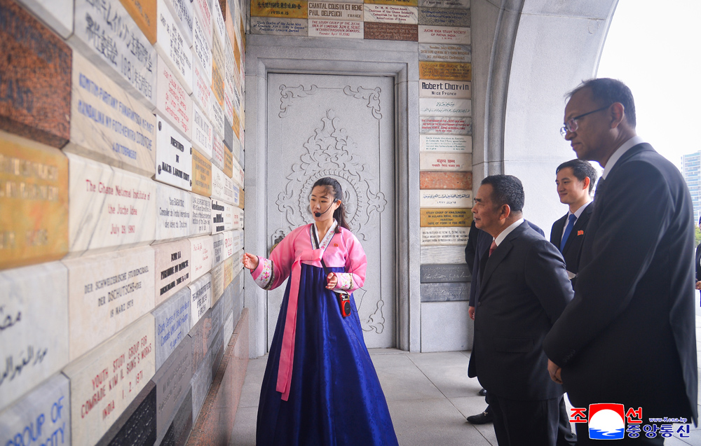 그들은 영생불멸의 주체사상을 창시하시여 인류가 나아갈 길을 환히 밝혀주시고 반제자주위업실현에 거대한 공헌을 하신 절세위인들의 불멸의 사상리론업적에 대한 해설을 들은 다음 탑전망대에 올라 평양시의 전경을 부감하였다.