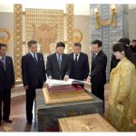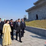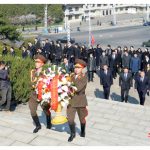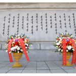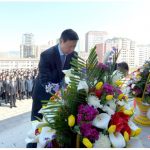 제31차 4월의 봄 친선예술축전에 참가하고있는 중국공산당 중앙위원회 대외련락부장 송도동지가 인솔하는 중국예술단이 16일 우의탑을 찾았다.