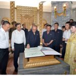 조선로동당 중앙위원회, 조선민주주의인민공화국 최고인민회의 상임위원회, 조선민주주의인민공화국 내각의 공동명의로 된 화환이 우의탑에 진정되였다.