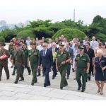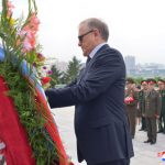 조선해방 73돐에 즈음하여 주조 로씨야련방대사관 성원들이 15일 해방탑에 화환을 진정하였다.