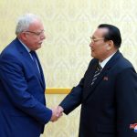 최고인민회의 상임위원회 부위원장 김영대동지는 8일 만수대의사당에서 의례방문하여온 팔레스티나국가 대통령특사인 리야드 알 말리키 외무 및 이주민상과 일행, 까씸굴리 바바예브 국회 부의장을 단장으로 하는 뚜르크메니스딴정부대표단을 각각 만나 담화를 하였다.(끝)