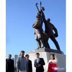 손님들은 위대한 수령 김일성동지와 위대한 령도자 김정일동지의 불멸의 사상리론업적에 대한 해설을 들으며 탑신과 군상들을 돌아본 다음 탑전망대에 올라 평양시의 전경을 부감하였다.