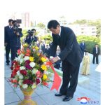 우의탑에 중화인민공화국 당 및 정부대표단의 명의로 된 꽃바구니가 진정되였다.